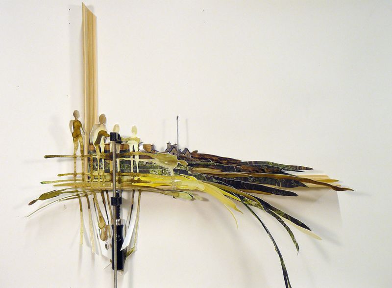 photoprint, paper, watercolour, wood, clamb
