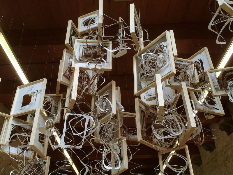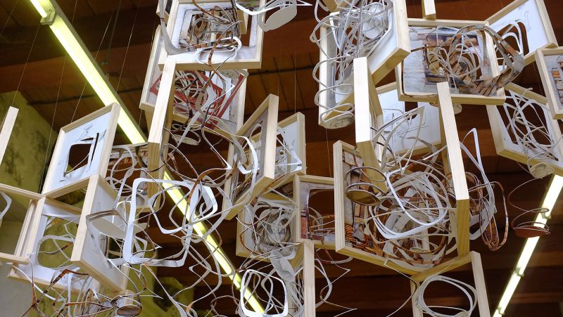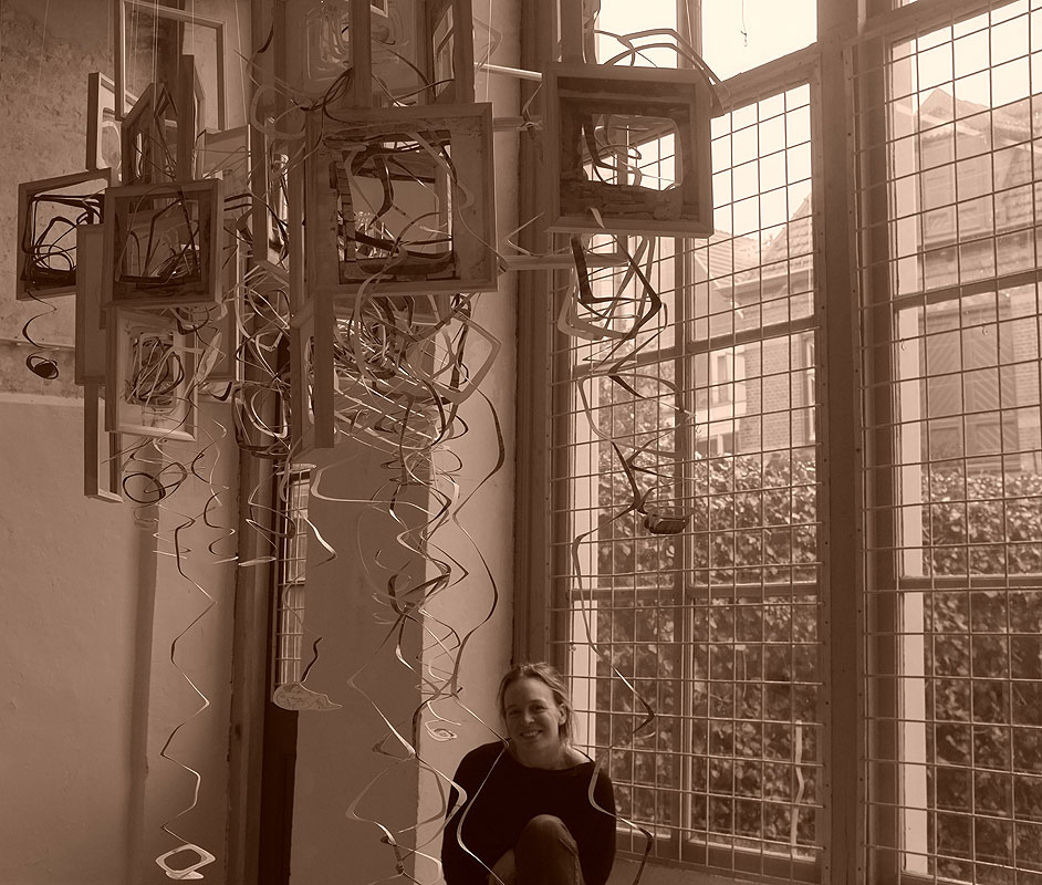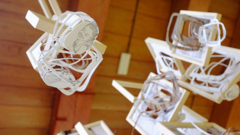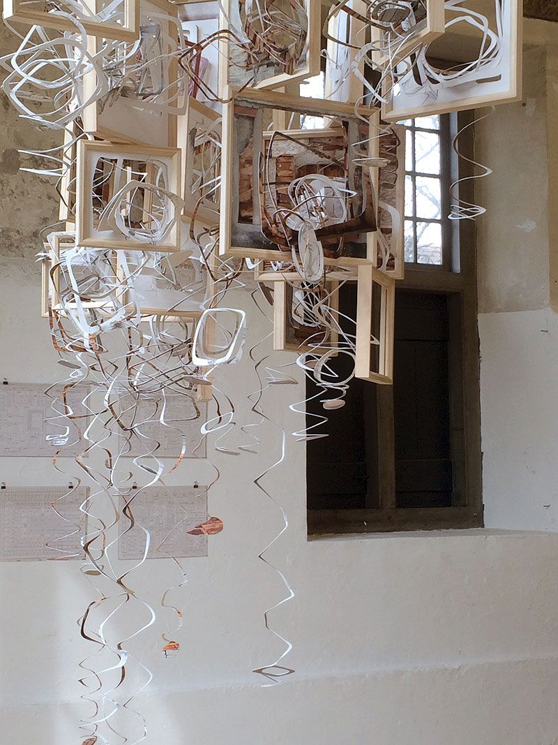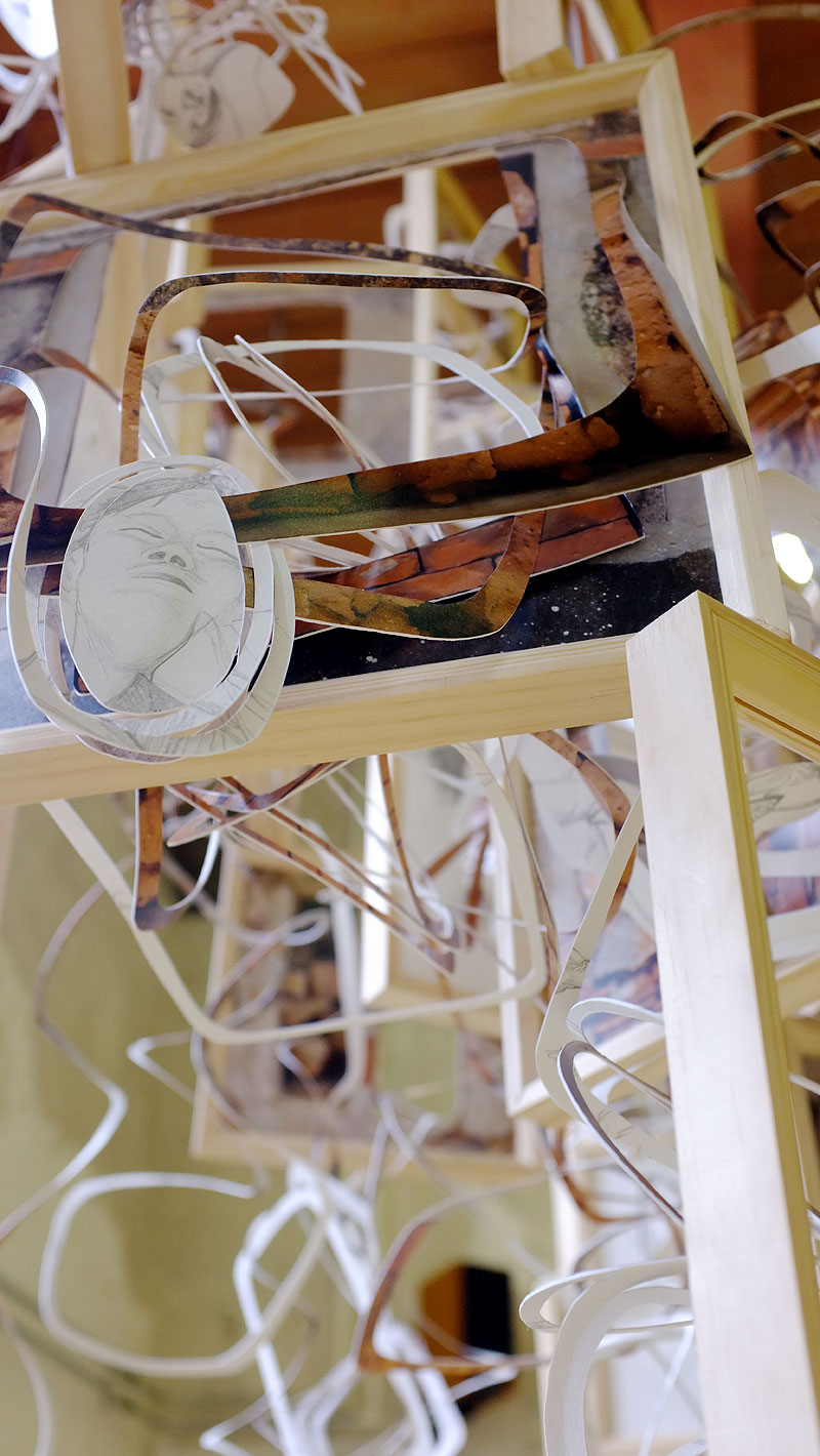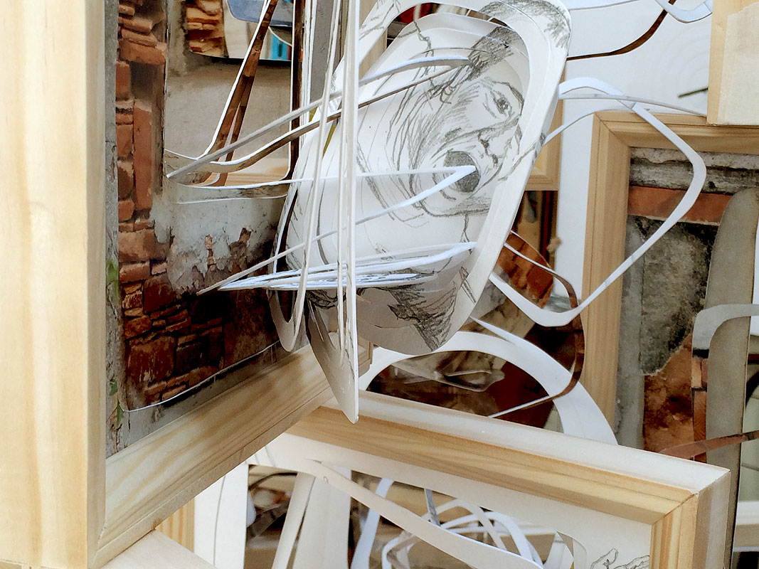 wooden frames, photoprints, graphite on paper