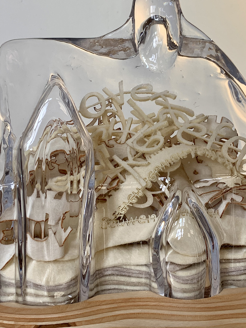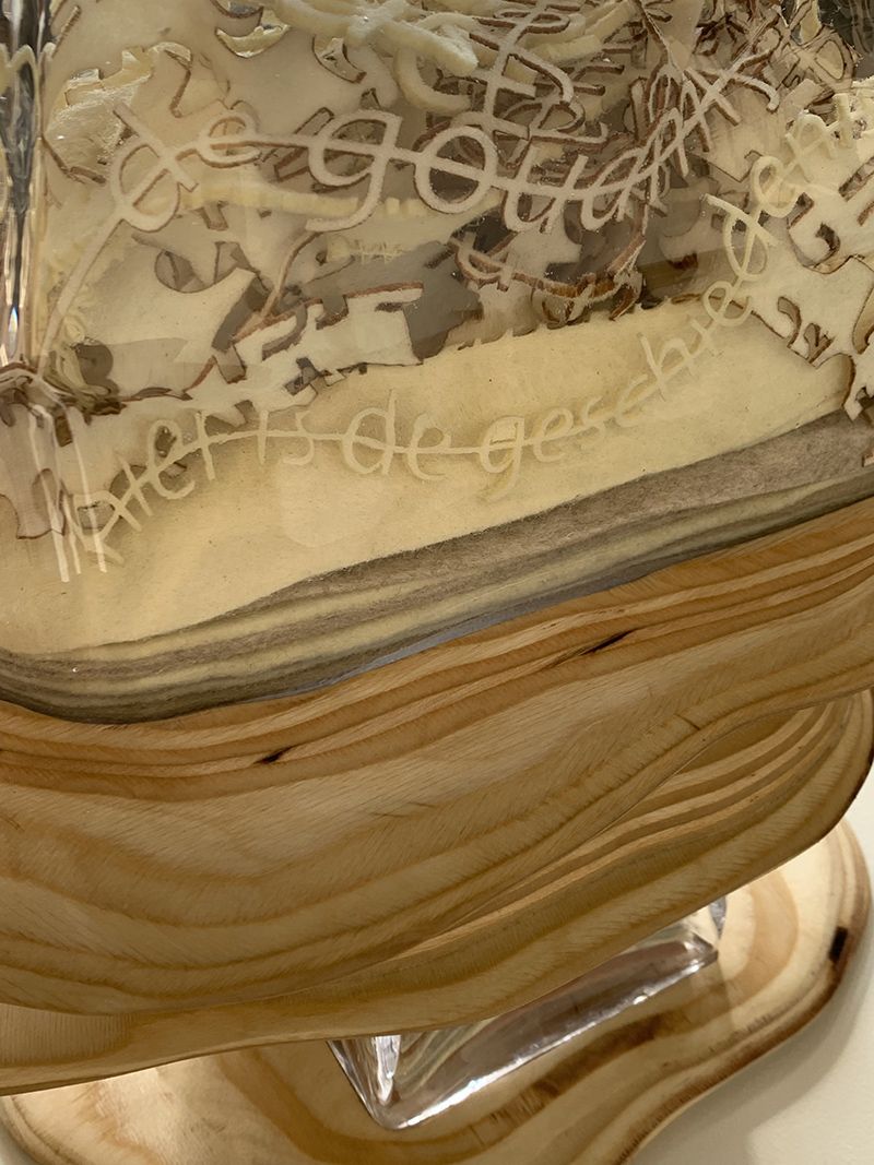 Parts of a poem by city poet Willemijn Spook were used for this sculpture. That poem is painted on the walls of St.Janskerk Haarlem, where Noord-Hollands Archief is located.